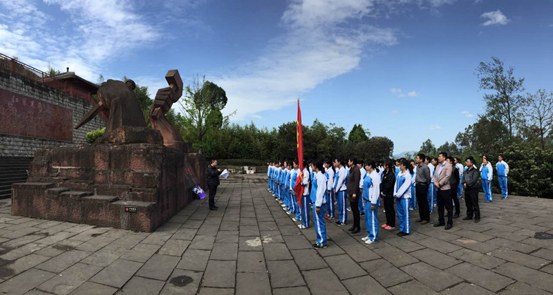 活动中,全体学生代表在庄严肃穆的红军石雕前,向英勇牺牲的革命烈士敬献鲜花,并以默哀的形式寄托对革命烈士的哀思。随后,全体学生举行了成人宣誓仪式,学生代表崔银雪同学发言,号召同学们以先烈为榜样,发愤读书,练好本领,自强不息,勇往直前,用自己的热情和才智,用自己的努力和汗水,为五星红旗增添光彩,把我们的伟大祖国建设得更加和谐,更加富强,更加繁荣昌盛!9+3工作组组长江斌老师发言,号召全体“9+3”同学们弘扬先烈精神,坚定共产主义信念,以实际行动告慰烈士忠魂,为了祖国的统一与和谐发展作出应有的贡献。最后,学生党支部书记、学生科唐家鹏科长讲话,他说,今天学生支部全体党员教师和同学们一起来到红军文化园开展祭祀活动,就是希望师生们在缅怀革命先烈的丰功伟绩的基础上,扬先烈精神,颂爱国情怀,增强公民意识,加深对“成人”含义的理解,坚定理想信念,以壮志激情创崭新未来,以火热青春建锦绣中华。
