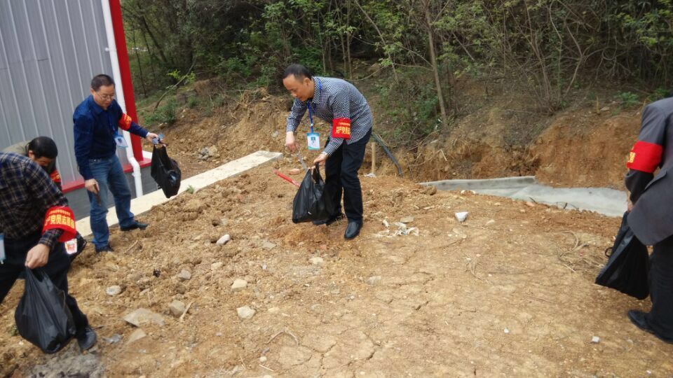 4月3日,后勤支部全体党员在党委委员苏克难、支部书记马健的带领下,到学校后山参加党员“义工日”劳动,清理后山环境卫生。
