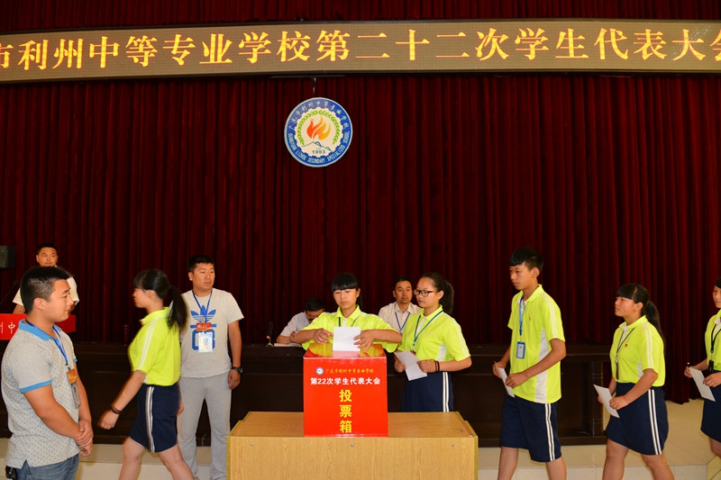 6月4日,利州中专第二十二次学生代表大会在学术报告厅胜利召开,大会投票选举产生了学校第二十二届学生干部暨学生自主管理委员会委员。学校党委杜建新书记、赵刚副校长、贾相成副校长、全体中层干部出席了本次大会, 32个班级的183名学生代表参加会议。同时,来自川北幼专、信息学院、广元中学、广元职高、朝天职中的9名学生干部代表、班主任代表、9+3驻校工作组、学生科全体成员列席了本次学生代表大会。大会由校团委郑敏书记主持。