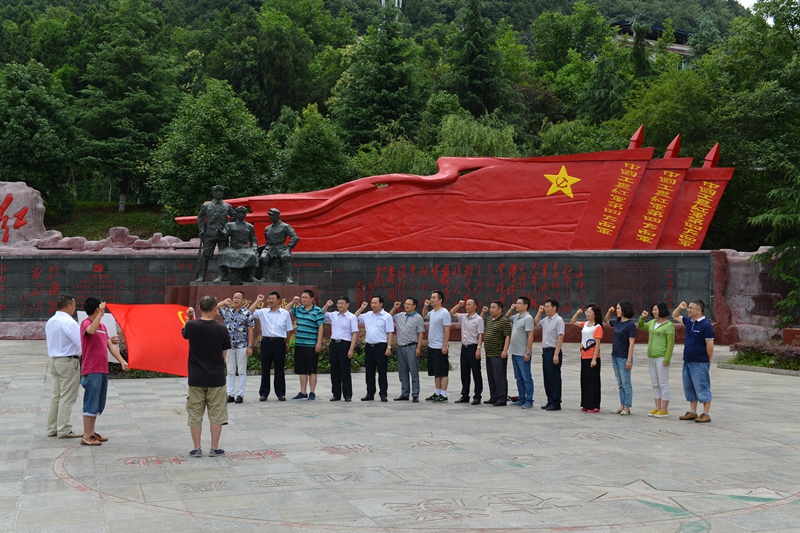 ??? 在红四方面军长征出发地、强度嘉陵江战役纪念地苍溪红军渡景区,在威严刚毅的红军渡铜像面前,大家举起拳头,再次高声朗诵入党誓词,高昂的声音传递着一名共产党员的铮铮誓言,表达了对革命先烈的无限缅怀。在“红四方面军长征出发地”纪念馆,红军势如破竹的气势鼓舞着每位党员的意志,珍惜幸福生活、发扬红军精神、传承红军精神成为了每位党员的心声。