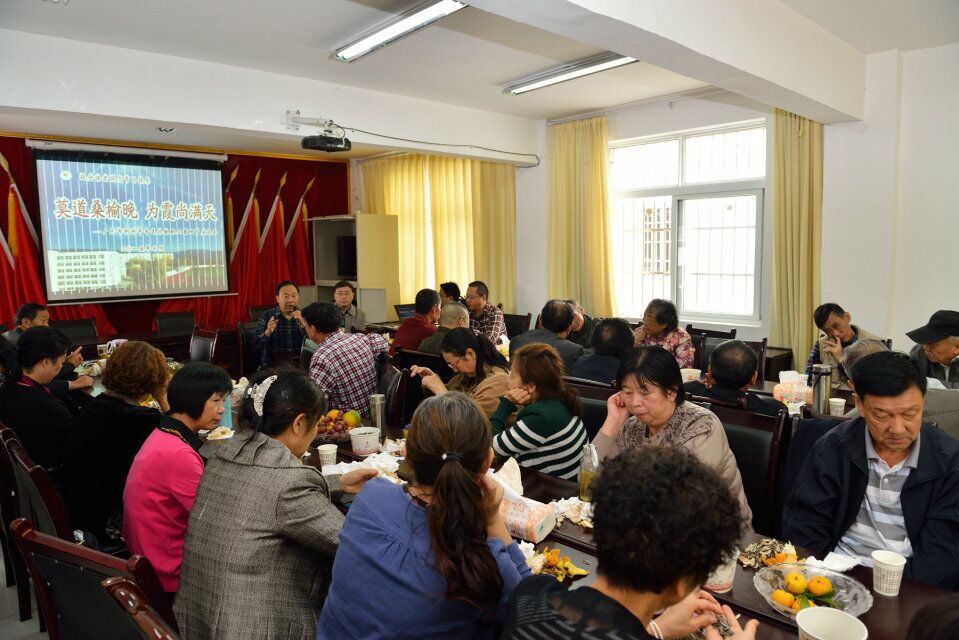 退休教职工为学校的发展倍感欣慰和振奋,苏清田老人现场填词,“节报重阳今又到,观花秋韵好,伏枥志千里,欲登泰山,绝顶众山小。苍松古柏忘忧草,岁月知多少,自信此人生,大椿年华,八十何曾老?”表达了“莫道桑榆晚,为霞尚满天”的豁达情怀。大家纷纷回顾在学校的岁月,表达对学校的深情,表示今后将继续关注支持学校发展,为学校做出力所能及的贡献。