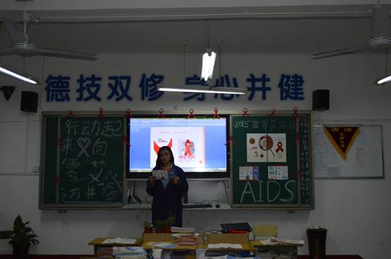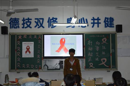 为了在广大青年学生心中树立预防艾滋病的意识,让学生了解艾滋病的危害,掌握科学的“防艾”知识,增强学生社会责任意识,并推动社会防艾工作深入开展。12月1日上午,我校团委积极组织开展“世界艾滋病日”宣传教育活动,校团委郑敏书记向全校师生发出倡议,号召全体师生关注艾滋、认识艾滋、抵御艾滋;积极参与“青春红丝带”行动;奉献爱心,消除歧视。随后,郑敏书记向各班分发了防艾宣传海报和资料,并要求各年级各班利用晚自习时间召开主题班会,深入学习防艾知识。同时,学校利用校园网、QQ群、LED大屏幕,广泛开展艾滋病知识宣传和感染风险警示教育,提高预防意识和技能。