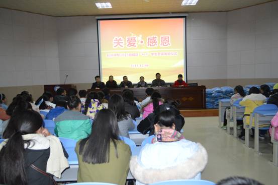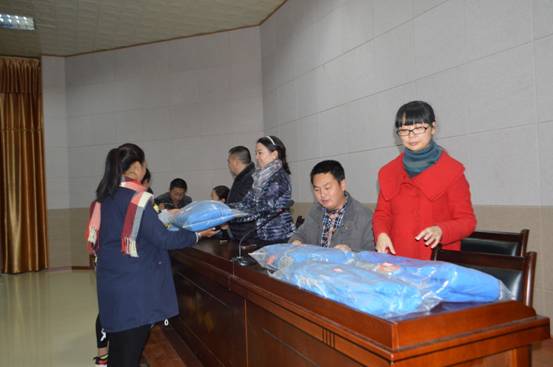 冬季来临,藏区“9+3”新生的冷暖也牵动着学校领导的心,学校于11月份采购御寒棉衣,由9+3办公室牵头办理于今天发放,为2015级“9+3”82名新学送去温暖,送上学校的关怀与慰问,让同学们感受到祖国、党和学校浓浓的关爱之情。让同学们能更好的在校园中学习,并以优异的成绩和精湛的技艺来回报祖国的关怀。