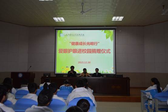 随着近年来青少年近视现象日益严重,我校高度重视青年学生爱眼护眼意识的培养。近期,我校团委响应共青团广元市委、广元市教育局、广元市少工委组织的“健康成长光明行”爱眼护眼进校园活动的号召,12月30日中午,组织百名青年学生开展爱眼护眼捐赠活动。活动中,广元市千益眼镜负责人为学生普及了爱眼护眼知识,同时为家庭贫困的近视同学送出了价值一万元的爱心劵。通过此次活动,同学们掌握了近视保健常识,懂得的爱眼护眼的重要性。