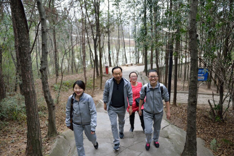 登山途中,大家你追我赶,不甘落后。青年老师一马当先,冲在最前头。老教师不叫苦、不叫累,坚持走完全程。大家一边登山,一边赏景,一边交流,互帮互助,一洗学期来的辛苦与疲惫。