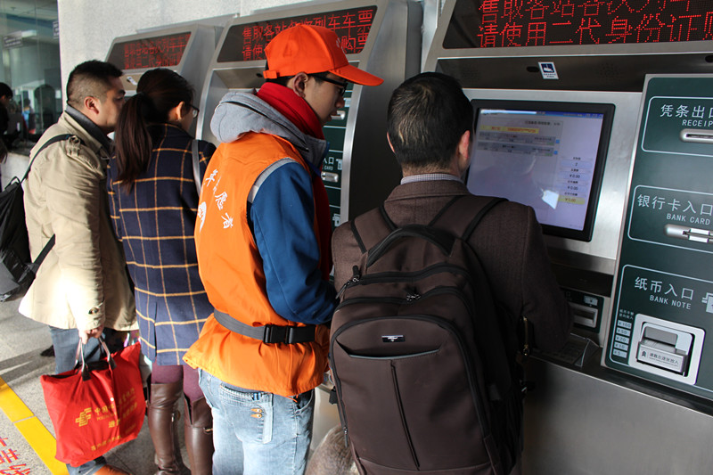 “取票的各位旅客,自动取票机可以更快取票,请大家到这边……”循着声音来到售票厅,长长的队伍正在缓慢移动,秩序井然,志愿者冯林正奔忙着组织旅客,提示大家按照窗口显示屏的提示办理各种业务,看,他正帮着旅客通过自动售票机购票,一位旅客走上前来,他笑着:“您好,有什么需要帮忙的吗?我叫冯林,是利州中专的学生志愿者!”语气中的大方和自信,瞬间驱散了旅客的奔波疲劳。