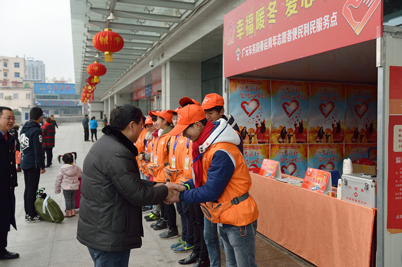 今年是我校青年学生志愿者服务铁路春运的第五个年头,本次志愿服务活动从2月10日起到3月3日止将持续23天。 2月22日,元宵节,学校党委书记杜建新、学校分管学生工作副校长贾相成、学生党支部书记唐家鹏亲临现场看望慰问春运志愿者,并与火车站领导进行交流,让大家充分体会到学校领导对春运志愿者活动的关心和支持,以及对同学们的真诚关怀。
