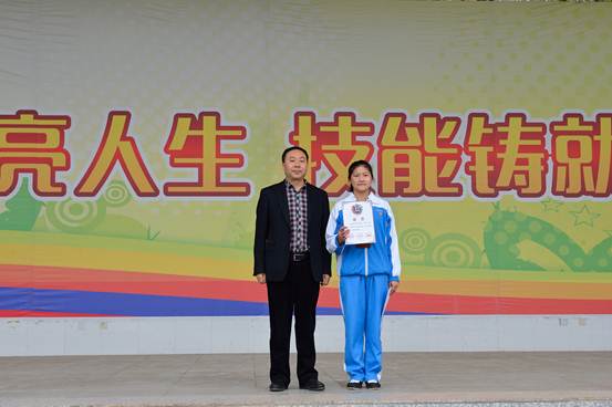 李锦校长为荣获“全国最美中职生”荣誉称号的我校13级高护班罗丽同学颁发了“全国最美中职生”荣誉证书,党委杜建新书记、赵刚副校长、贾相成副校长、苏克难副校长分别为受表彰的集体和个人颁发了奖状和奖品。