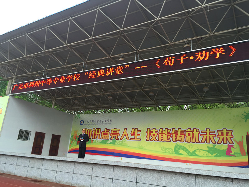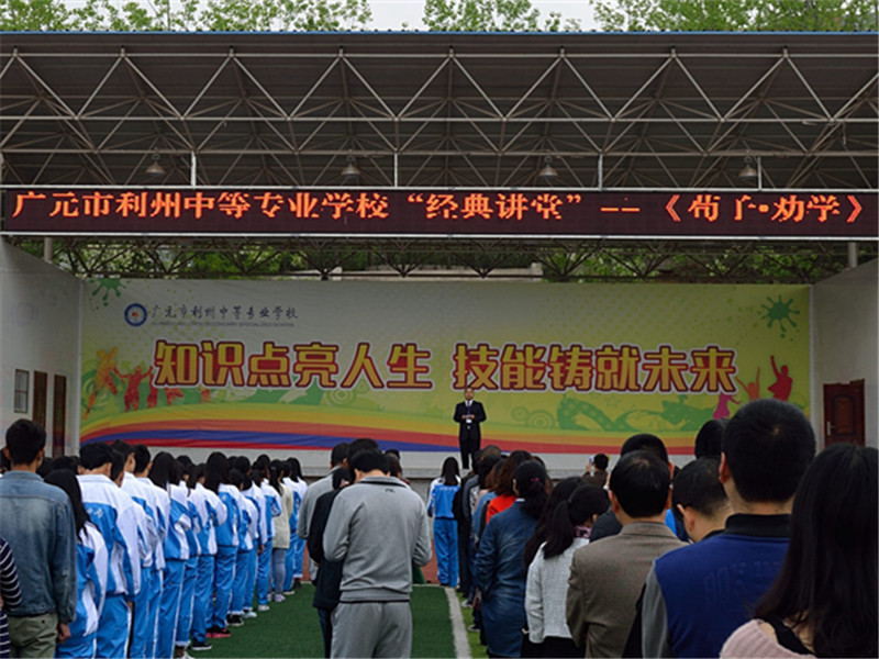 为贯彻学校创建“省级文明单位”、“文明校园”文件精神,助推学校特色德育的建设,丰富德育内容,创新德育载体,在全校营造人人品读经典的浓厚氛围,4月11日上午,利州中专“经典讲堂”在升旗仪式结束后正式开讲。学校贾相成副校长为全校师生带来了一场精彩的主题演讲——《荀子•劝学》。