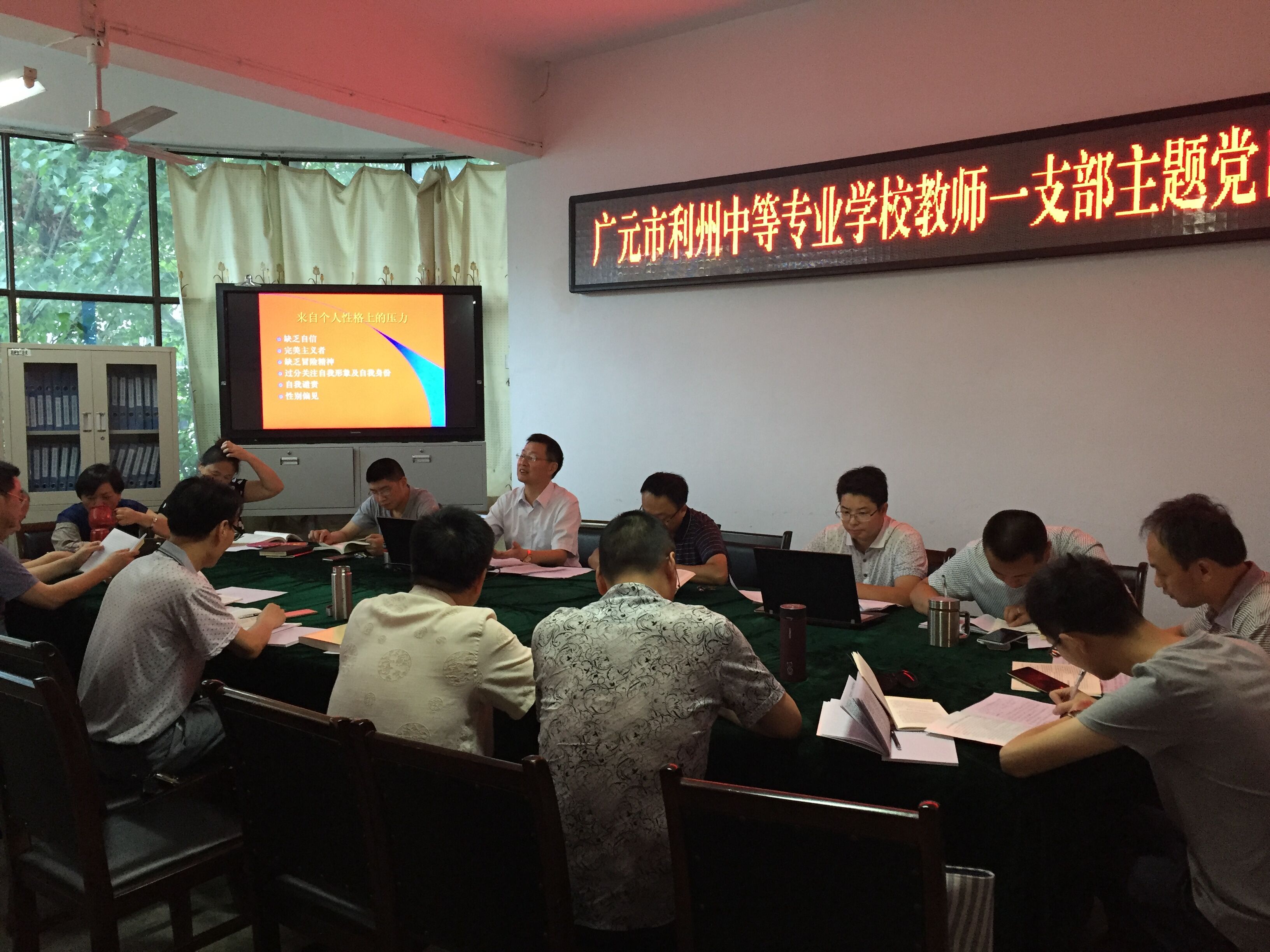 ????????????????????????????? -- 教师一支部召开“两学一做”第二专题学习讨论会 7月13日,利州中专教师第一支部召开大会,组织党员集中开展“两学一做”学习教育第二个专题学习讨论。利州中专党委委员,教学副校长赵刚同志参加所在支部学习讨论。会议由支部书记李文华主持。 会上教师一支部全体党员集中学习了《习近平总书记系列重要讲话读本》中关于全面从严治党的重要文章《打铁还需自身硬》。支部围绕中国共产党是中国特色社会主义事业的坚强领导核心、管党治党一刻不能松懈、补足共产党人精神上的“钙”、培养选拔党和人民需要的好干部、作风建设永远在路上、用制度治党、管权、治吏、用铁的纪律维护党的团结统一、坚持以零容忍态度惩治腐败、充分调动广大党员干部的积极性、主动性、创造性等重要论述展开学习讨论。大家一致认为,支部党员要从自身做起,不断加强党性修养,坚持“学高为师、身正为范”的职业操守,始终把为人民服务、为学生服务、为社会服务作为行为指南和实践遵循,要自觉增强改革创新精神,增强主动担当、积极作为的勇气,充分发挥模范带头作用。