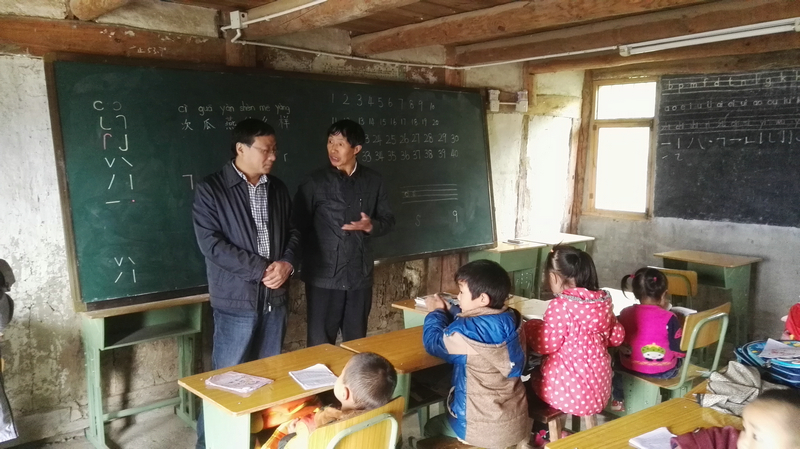 在山寨村小学校,杜书记一行详细了解教学情况,据代课教师母老师介绍,目前村小新入学了三名学前班学生,前期学校为村小添置的书桌、黑板等教学设备完全能满足教学需要,,山寨村民都十分感谢学校的帮扶。