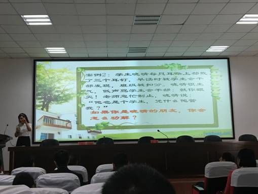 李迪老师根据她多年的班主任工作经验、结合精彩的案例故事重点从怎样做一名受学生欢迎的班主任老师、如何把“尊重”、“共情”等德育精神运用到班级中、优秀主题班会的组织方法与技巧等内容进行了讲解。同时,她也结合自身经验给在场的老师们解答了一些班主任老师在工作中遇到的困惑。