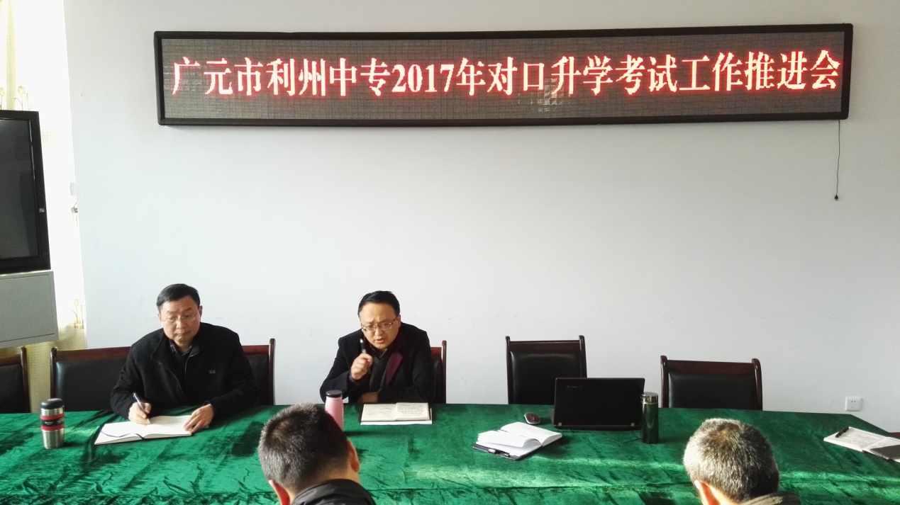 2016年11月16日上午,赵刚副校长组织教务科、实训科、学生科、教科室、招生就业科等四个科室负责人及语文教研组长何忠勇老师、数学教研组长李红兵主任、英语教研组长杨娟老师召开了2017年对口升学考试工作推进会。