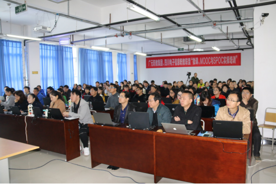 11月15日,我校陶波等5位教师参加了四川信息职业技术学院与北京大学、清华大学联合举办的“微课、MOOC与SPOC实操培训班”学习。此次培训由北京大学教育学院教授、教育技术博士生导师赵国栋主讲,旨在提升教师教学观念以及利用信息技术开展新形势教学的的能力,同期培训的学员有100多名,来自广元职教集团10余所中高职院校,本次培训时间为2天。
