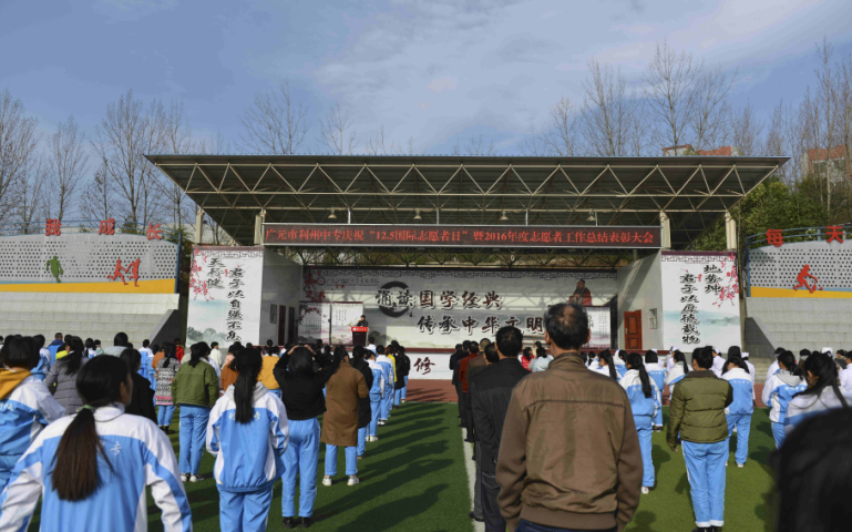 为庆祝第31个国际志愿者日,大力弘扬“奉献、友爱、互助、进步”的志愿精神,不断加强和完善广元市利州中专青年志愿工作服务体系建设,切实发挥志愿服务在学校发展和构建和谐校园中的积极作用,2016年12月5日上午,我校庆祝“12.5国际志愿者日”暨2016年度志愿者工作总结表彰大会在学校田径场隆重召开。