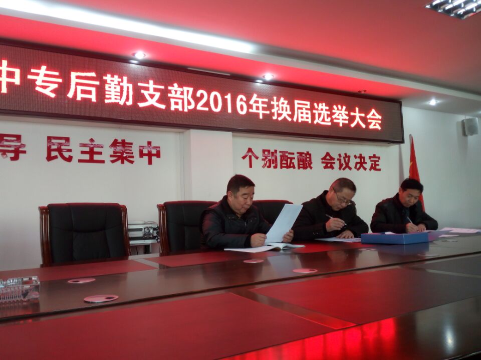 2016年12月26日,后勤支部按照学校党委对支部换届工作安排,召开全体党员大会进行了换届选举。后勤支部书记马健同志主持会议并总结上届支部工作。刘定富、昝济民分别宣读了后勤支部关于换届选举工作的请示、学校党委批复及选举工作有关纪律、要求。