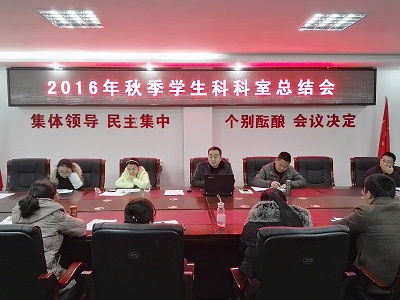 1月10日上午,我校学生科科室总结会在行政楼四楼会议室召开,科室全体成员参加了会议,贾相成副校长出席。
