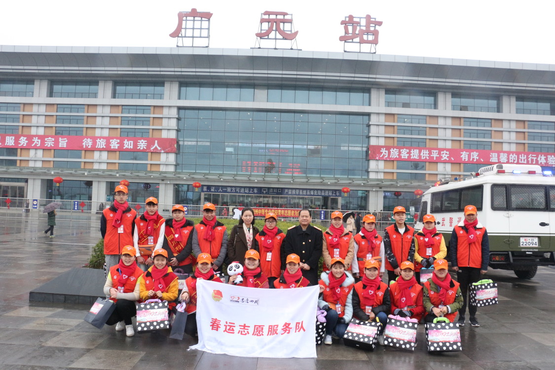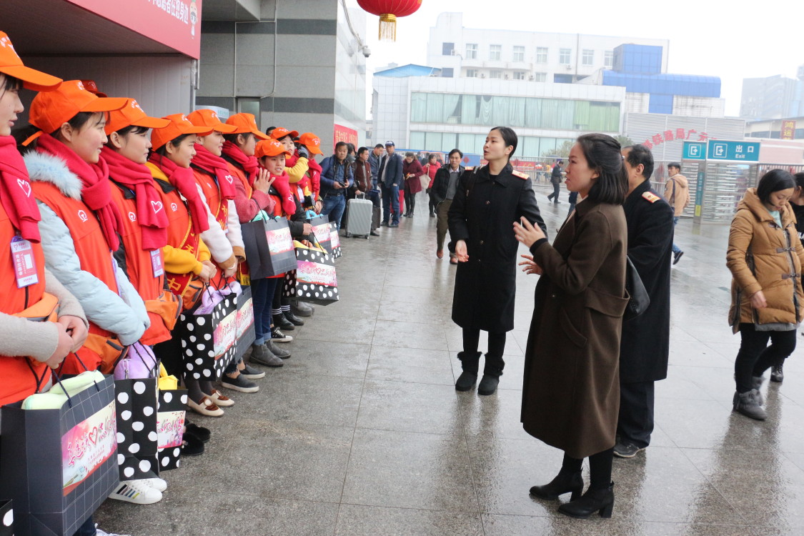 “志愿者们,你们辛苦了,正是因为你们的付出和坚守,我们广元这座城市变得更温暖!”2月6日上午,团市委副书记黄燕一行来到广元火车站,亲切看望慰问我校的春运志愿者,向他们送去价值3000元的慰问品,致以新春的祝福,与他们亲切交谈,了解志愿者的工作和服务感受,对志愿者们用实际行动温暖旅客表示感谢和肯定,并对他们放弃休息时间坚持开展志愿服务的精神大加赞赏,更勉励同学们们在未来这十几天春运返程的高峰期,克服连日上岗的疲惫感,用更加热情、更加细致、更加周到的服务为旅客送上广元的祝福。