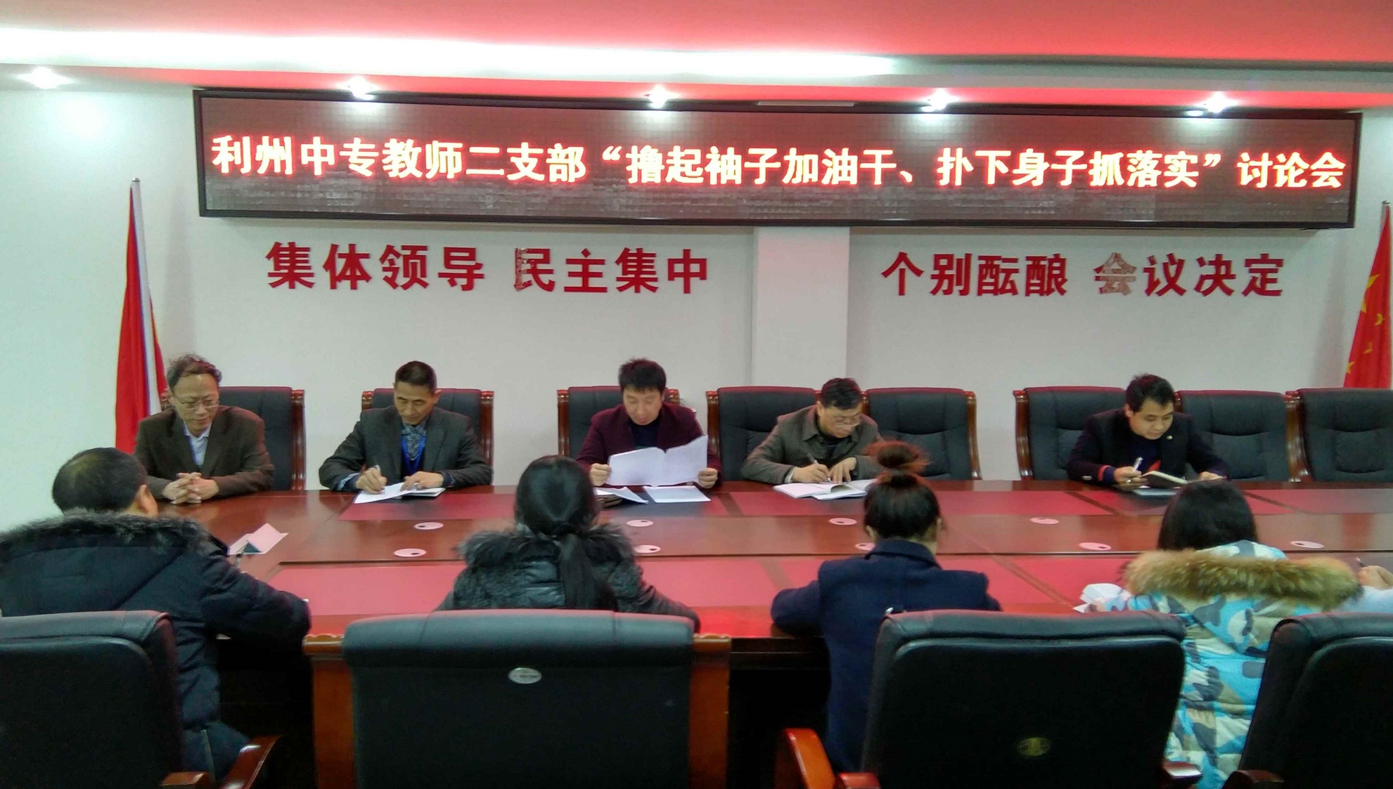 ?????? 会议由支部书记邓松主持,学校党委杜建新书记也参加了此次会议,首先邓书记组织学习了“四川省贯彻《中国共产党党组工作条例(试行)》实施细则”,和四川日报《撸起袖子加油干、扑下身子抓落实》的评论文章。全体教师结合自己的工作积极发言,大家一致认为要端正态度,工作积极主动,加强学习,提高思想认识;既要有撸起袖子的决心,还要有扑下身子的实干精神,集中精力、突出重点、强化责任、改进作风,搞好教育、教学和党建工作。