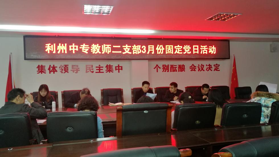 2017年3月23日在学校行政楼4楼会议室组织召开了教师二支部“三月主题党日活动”。会议由支部书记邓松主持,大会首先由邓书记宣讲学习《广元市基层党建底线管理办法》和《广元市基层党组织“三会一课”规程》。邓书记要求大家认真领会学校党委“知底线,明纪律,强党性”的精神,支委要做好“三会一课”的组织工作。随后大家都做了踊跃发言,并表示认真学习、认真领会,做一名合格党员。最后支委会对“双联”和“走基层”工作做了具体要求。
