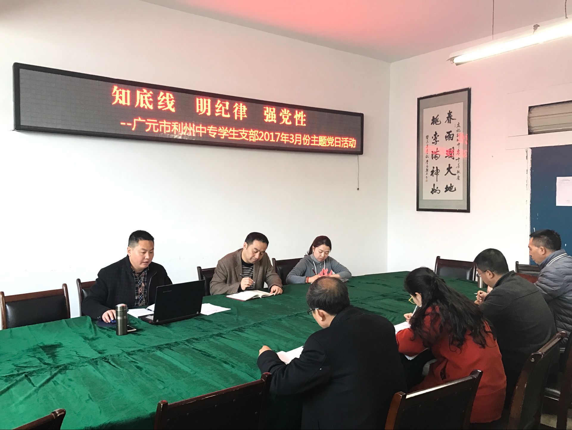 ??? 根据市委组织部关于认真落实《广元市“共产党员活动日”规程》通知要求,按照学校党委工作安排,3月24日上午,学生支部全体党员在东楼3-4会议室认真开展“知底线 明纪律 强党性”主题党日活动。本次学习活动由学生党支部书记唐家鹏同志主持。