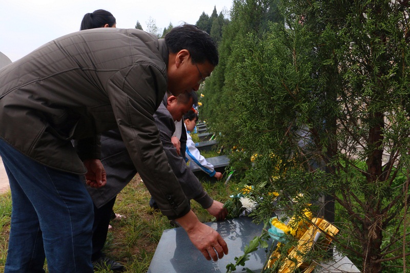 校党委杜建新书记向革命烈士致悼词,他说到,多少年来,革命烈士的丰功伟绩一直被人们传诵。不管时代如何变迁,先烈们舍生忘死、前赴后继、为他人谋幸福的崇高品德我们应世代铭记,他们的无畏和奉献精神应万古长青。面对这不眠的烈士墓,让我们永远懂得去珍惜生命,珍惜亲情,珍惜生活中一切美好的东西。我们在党员、团员中大力开展“两学一做”学习教育、“一学一做”教育实践,就是要让大家时刻铭记自己的誓言,坚守革命的崇高理想,紧密团结在党的周围,在工作中带好头、服好务,用我们今天的努力,明天的开拓,再创美好的未来,以告慰烈士们的在天英灵!