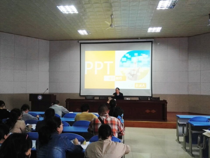 2017年4月25日下午4:00,学校二楼会议室,全校100余名教师齐聚一堂,聆听学校高级讲师、机电信息教学部副主任李洪兵老师的“PPT设计及微课制作”专题讲座。