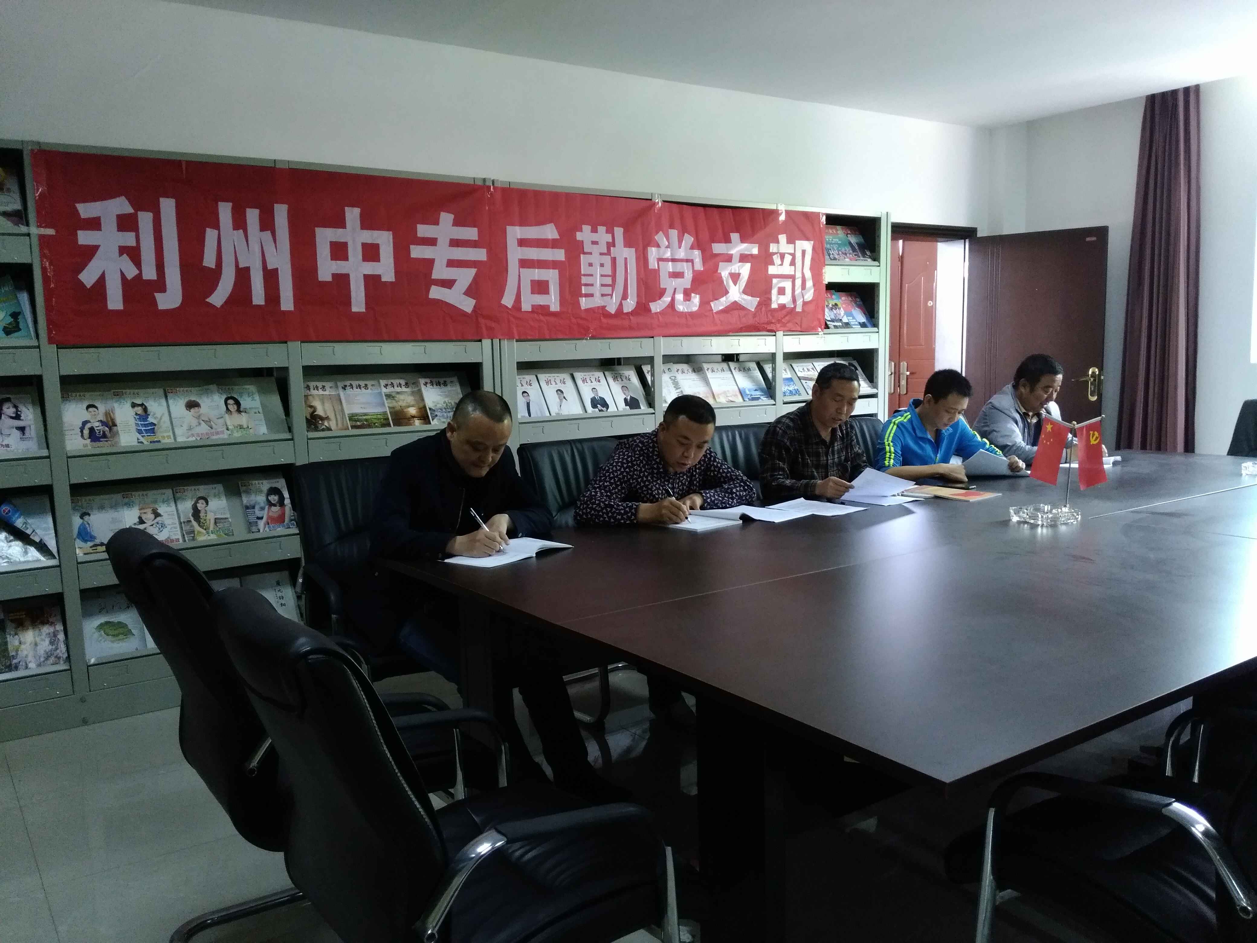 2017年4月28日上午,后勤支部全体共产党员在二楼会议室召开了主题会议。会上,刘定富委员组织大家集中学习了习近平总书记在十二届全国人大五次会议四川代表团审议时的讲话精神、学习了《关于加强中小学校党的建设工作的意见》全文。学习中,与会者对习总书记讲到的全面从严治党永远在路上,没有终点深受教育,这表明了我们党管党、党治党的决心。大家认为我们一定要维护好这一政治生态环境,并从我做起,从今天做起,从后勤支部做起。