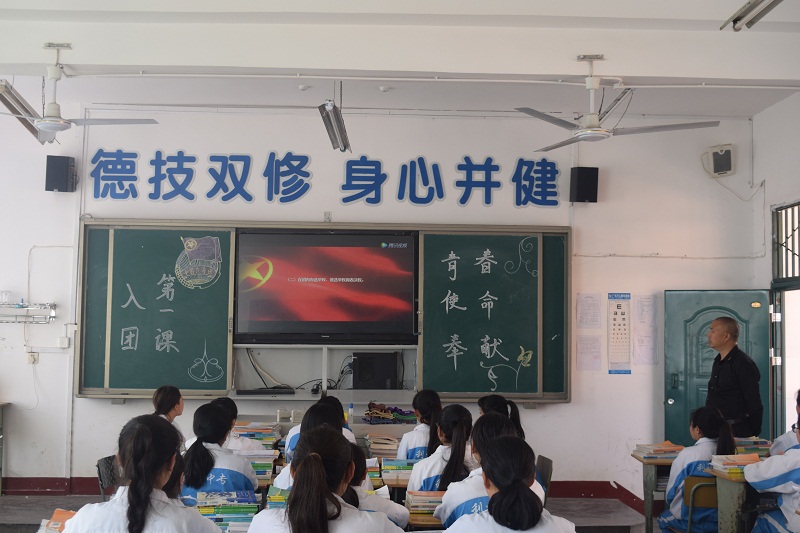 5月2日晚,我校全体学生利用晚自习时间在各班教室集体收看了共青团中央学校部参与拍摄的新团员入团仪式。