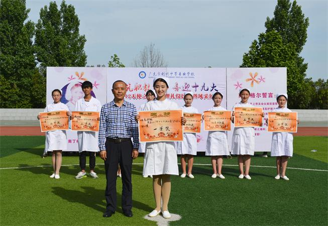 5月11日下午,在实训科、校团委联合主办,医卫教学部协助下,举行了“5.12天使之星” 护理礼仪风采大赛,全校师生共同参加了此次活动。活动分别进行了护理礼仪形象展示与比赛、护理授帽仪式、护理礼仪比赛表彰仪式。