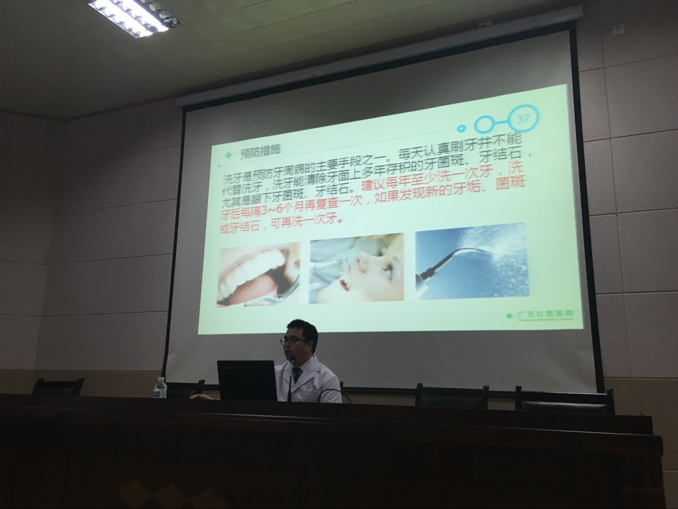 2017年5月17日下午,我校校工会邀请广元口腔医院专家陈远礼主任来我校为教职工开展了一堂“口腔卫生与健康”的专题知识讲座。讲座上,陈远礼主任为大家普及了龋齿、牙周炎、智齿等这些常见口腔问题,针对这些口腔问题的成因、病况、预防和治疗做了详细的讲解。同时,口腔医院的护士还特别为我们演示了正确的刷牙姿势。讲座的时间虽然不长,但我校教职工获益匪浅。学校以后也将争取多组织一些像这样科普的知识讲座。(校工会)