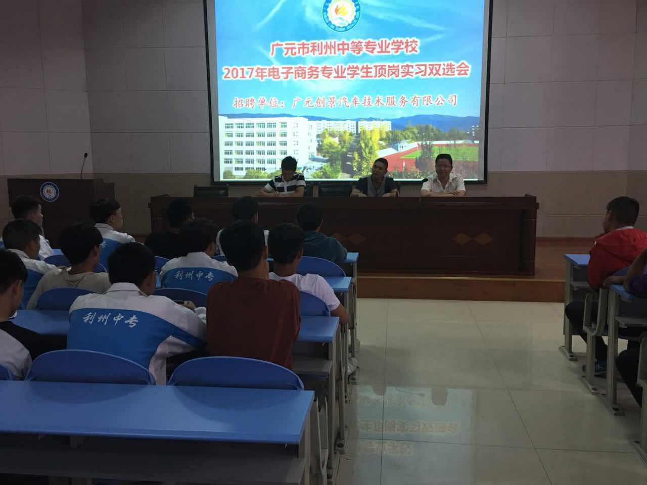 6月6日,广元创景汽车技术服务有限公司总经理冯明超一行来我校拟招聘前台和收银服务员各1名,维修工10名。我校15级电子商务专业、汽修专业顶岗实习学生40余人参加了招聘会,报名15人。