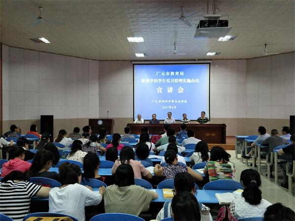 为贯彻落实广元市教育局关于《职业学校学生实习管理实施办法》的精神,进一步规范和加强学生实习管理工作,6月7日下午,广元市利州中专召开《职业学校学生实习管理实施办法》宣讲大会,会议由校李锦校长主持,学校班子成员及全体教职工参加了会议。