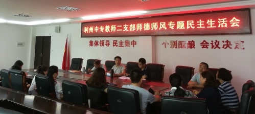 ??????? 6月9日下午教师二支部在行政楼四楼会议室组织召开了“师德师风专题民主生活会”。