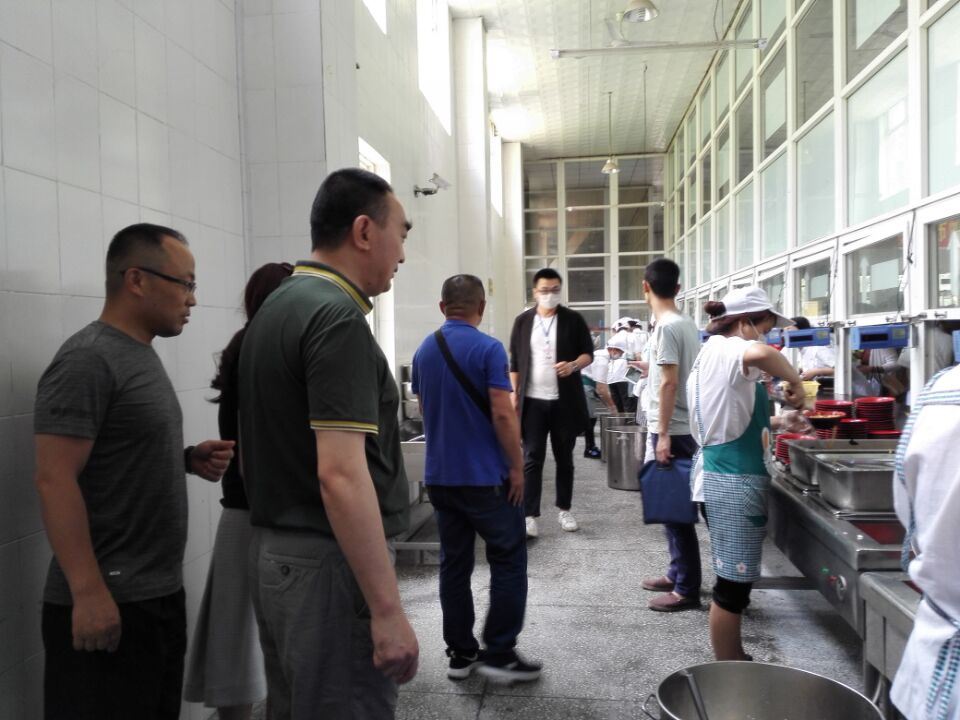 今日上午,利州区食药局吴局长、上西食药所孙所长、戚书记等人一行到食堂检查中考期间考生的伙食安全。检查组认真查看米、面、肉、油、调味品的购货地点、时间以及厂商的资质报告,查看蔬菜的质量及品种,查看菜谱及菜品的加工环节以及菜品的营养状况,查看留样、保存及销毁,查看清洗、消毒,查看员工的健康证、培训合格证以及每天的晨检记录。检查组对检查中存在的问题一一指出,并要求立即整改到位。