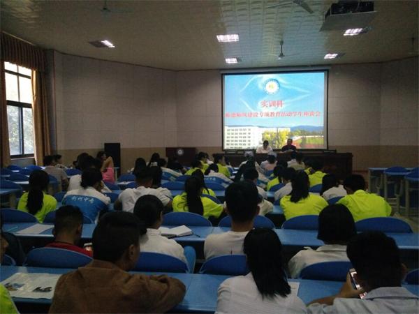 伴随着本学期实践教学已接近尾声,实训科于6月13日下午在教学楼二楼会议室召开了“实训科师德师风建设专项教学活动学生座谈会”会议由冯大军科长主持,实训科全体实验室管理人员及全校各个班级的班长、学习委员、及纪律委员参加了本次会议。
