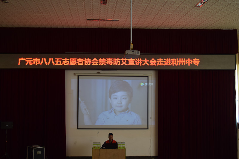 在第30个国际禁毒日到来之际,为加强在校青年学生对毒品的认识,了解吸毒的危害,远离毒品,同时提高青年学生对艾滋病的危机意识,掌握预防毒品和艾滋病的基本知识,6月26日下午15:00,由广元市利州区疾病预防控制中心、广元市利州中专联合举办,广元市八八五志愿者协会承办的禁毒防艾宣讲大会在利州中专学术报告厅举行。利州中专近500余名青年学生参加了此次宣讲大会。