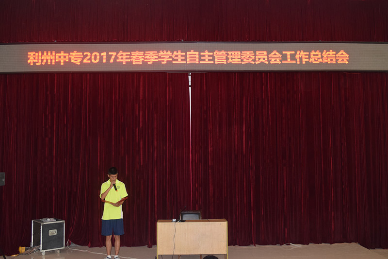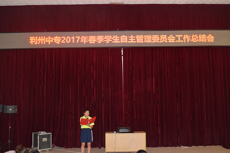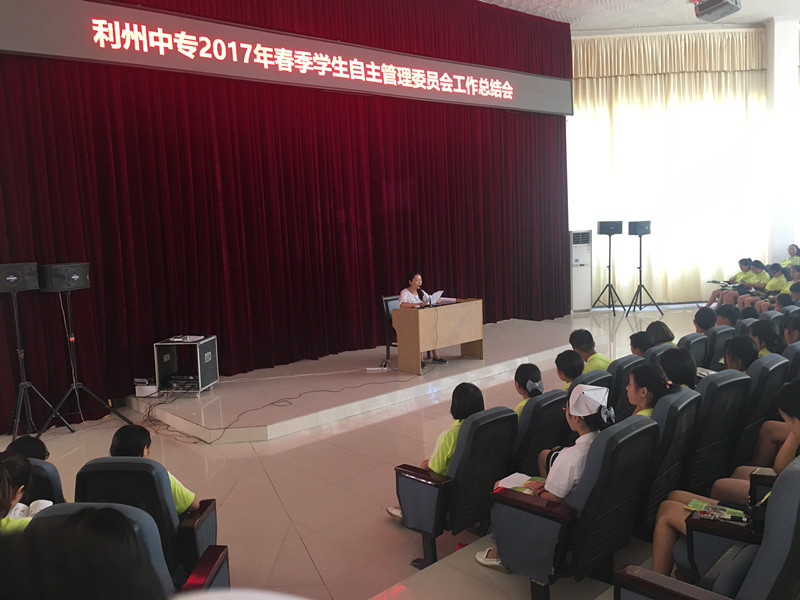 2017年6月26日下午17:00,利州中专300余名学生干部在学术报告厅召开了2017年春季学生自主管理委员会工作总结会。出席本次会议的有学校学生科科长唐家鹏、校团委书记郑敏、副书记郭珍以及从事学生管理工作的相关负责老师。