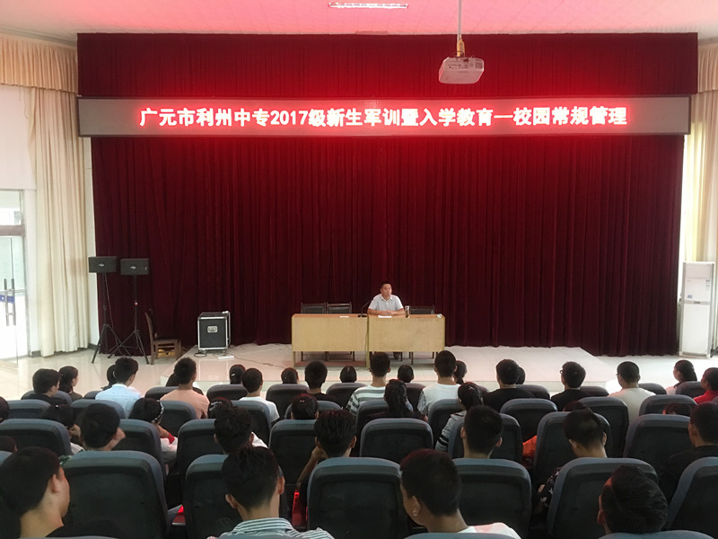 为抓好校园常规管理,扎实、有效地开展学校教育教学活动,教育并督促学生自觉养成良好行为习惯, 8月26日上午,利州中专在学校学术报告厅召开2017级新生校园常规管理教育大会。