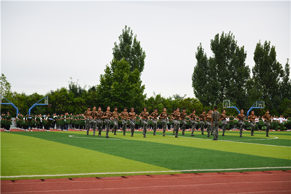 分列式、队列表演、学生教官风采展示、大型鼓韵表演、500名新生内务整理,全体军训学员用完美的表现展示了我校的自主军训成果;手语表演《天耀中华》表达了全体同学的拳拳爱国之心以及对祖国的美好祝愿!