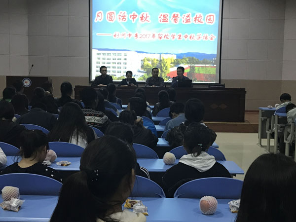 贾相成副校长向同学们致以节日的慰问与祝福,为同学们分发了月饼与苹果。他说:“同学们虽然因各种因素不能回家与亲人团聚,但老师们时刻关注着大家的生活,希望同学们克服思家恋乡情绪。”他要求同学们在日常学习生活中主动加强交流沟通,积极适应新的学习、生活环境,健康成长。他殷切的希望同学们制定好学习计划,根据自己的特点规划好中专学习目标,树立理想,并以实际行动努力实现既定目标,回报父母,报效社会。