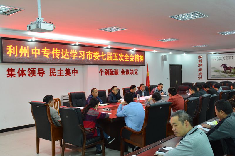 10月9日,学校召开行政会议,专题传达学习贯彻市委七届五次全会精神,校党委杜建新书记主持会议,学校中层以上干部参加会议。