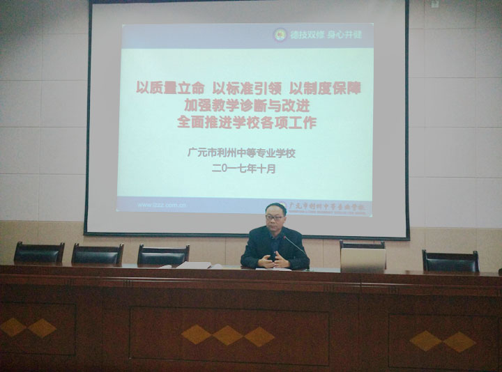 李锦校长指出,教学工作诊断与改进是全校性的工作,是学校自查问题改进发展的大事,是学校常态化管理的定式,作为职业学校,我们要坚持“以立德树人为根本,以服务发展为宗旨,以促进就业为导向”,根据广元市的城市功能定位、产业结构调整、经济增长方式转变和科技进步的特点,紧密结合康养生态旅游等特色产业的发展需要,深化产教融合、校企合作,推进专业建设规范化,引导学校以专业建设为核心,制定和实施专业设置与结构调整优化方案,合理布局学校专业结构。全体教师要以推进中职学校教学诊断与改进工作为主线,以加强学校内涵建设为重要抓手,迅速行动起来,认真谋划,加强学校信息化建设,创新教学方式方法,提升办学质量,大力培养具有工匠精神和职业道德素养的中高素质技术技能人才,为广元地方经济社会发展作出积极的贡献。