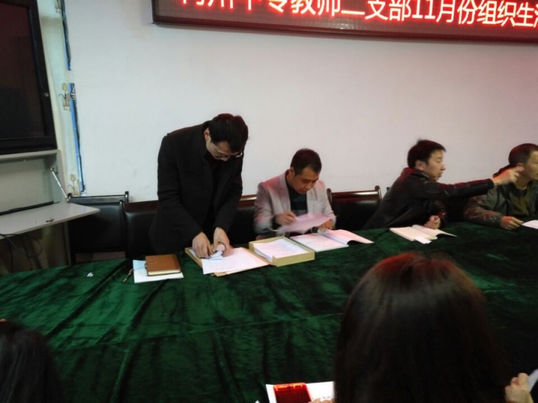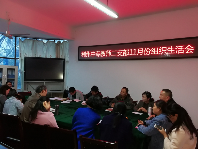 ?? 11月4日下午教师二支部全体党员同志在学校教学楼东3-4召开了11月份党员组织生活会,会议由支部书记邓松同志主持。