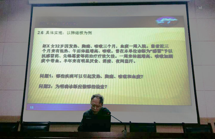 12月5日下午,在学校二楼会议室,教科室组织全校教师业务学习。医卫教学部主任李永作《PBL教学法在中职医学专业应用》专题讲座。李主任从PBL教学法的产生及特点, PBL教学法的优势,PBL教学法的要素和应用,PBL教学法的教学组织及过程等方面从理论和技术层面进行了详细的讲解。并以肺结核为例结合学校信息化教学手段演示了PBL教学法的具体实施过程,主要包括教师课前教学病例的收集、课前一周将病例及问题发放给班级学习小组、学习小组通过网络和资源库解决问题、教师集中点评、讲解和强化。