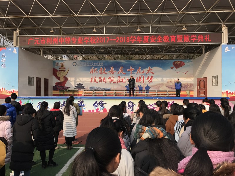 2018年上午10:30,全校师生在操场集合,由安全保卫科马健科长、学生科唐家鹏科长对学生进行寒假及春节期间安全教育,使学生能安全离校平安返家,假期间遵纪守法, 和家人一起度过一个平安愉快而祥和的寒假及新春佳节!