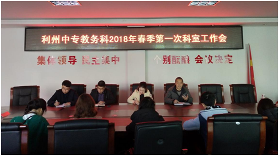 2018年2月28日上午,教务科召开了2018春第一次科室工作会议。教务科、教科室、信息中心全体成员参加了会议。