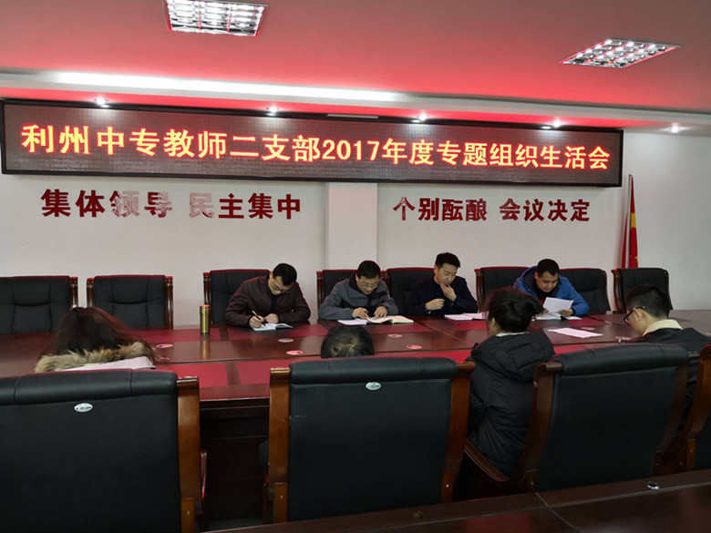 ????? 3月6日下午教师二支部在学校行政楼四楼会议室组织召开了2017年度支部专题组织生活会。支部委员、部分党员群众、学校党委书记杜建新参加了此次会议。会议由支部书记邓松主持。
