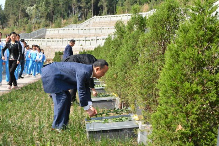 学校党委书记杜建新致扫墓词,讲述了烈士们的生平事迹,并勉励全体同志要以先烈为榜样,用自己的热情和才智,用自己的努力和汗水,为五星红旗增添光彩,为实现中华民族的伟大复兴而努力奋斗。