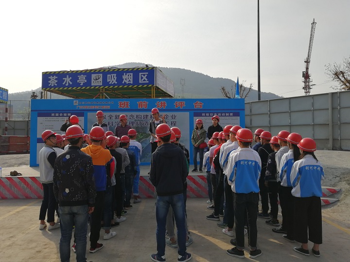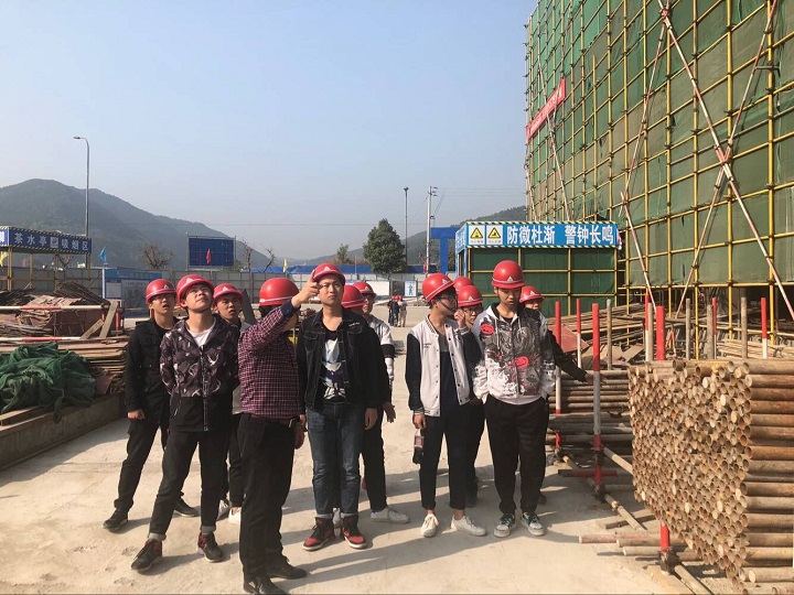 抵达工地后,该项目技术负责人杜总向大家详细介绍了工程概况、项目进度,并带领全体教师和学生深入施工现场,对项目建设的关键重环节进行详细讲解。然后开展分组教学,分别由各位专业课教师带队,结合学生在校所学的理论知识对基础、梁、柱、板、剪力墙等重要部位和构件现场进行详细讲解,对工程管理、安全管理、施工工艺等多方面综合现场教学;现场教学,学生学习兴趣非常浓厚,不停的提问,老师们非常利用现场进行轻松教学,收到了良好的教学效果。最后,教学部主任邓松强调,本次实践教学是让教师与学生走进一线现场教学,有效提升学生的学习专业知识的兴趣,现场的实物展示,老师们的专业讲解、学生很容易掌握专业知识,同时,老师们与现场的实践专家进行专业知识的广泛交流,也提高了老师的专业水平,特别是新工艺、新技术、新规范的实施,充实了老师的专业知识,提高了专业业务水平,更好的教好学生。让学生亲身体验工地,全面提升学习效率和兴趣,让学生尽早树立目标,努力学习。本次实践教学效果良好,今后,我们要常态化开展课堂搬到工地现场的实践教学,全面提升农林建筑部建筑专业教学质量。